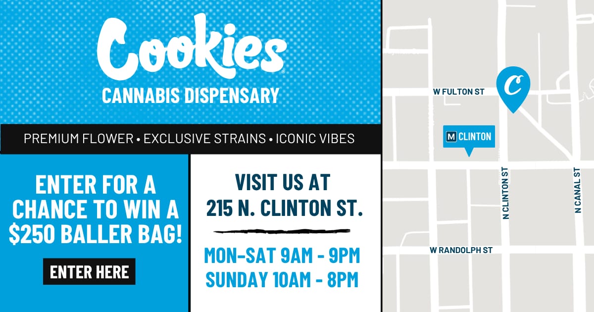 Cookies Chicago isn’t just a dispensary, it’s a whole vibe. And right now, they’re giving away a $250 Baller Bag to one lucky text and email subscriber. Enter by October 31st to win. No purchase necessary. Must be 21+ w/ valid ID. Find Cookies at 215 N. Clinton St., West Loop, steps from Union Station.*