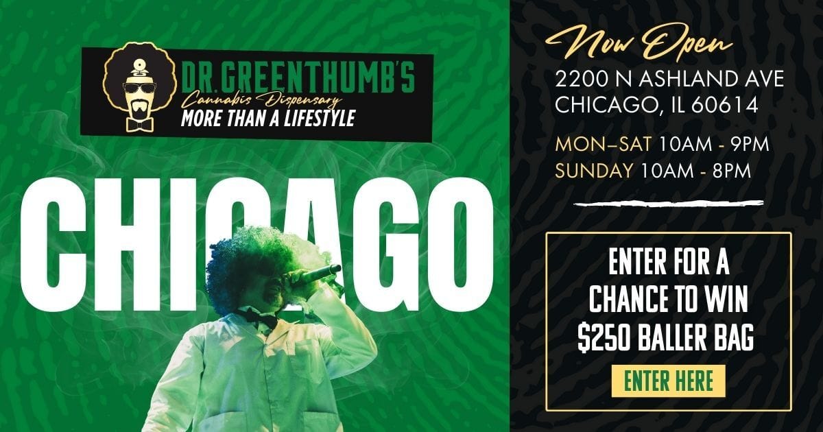 Heads up, Chicago. Dr. Greenthumb’s is now open in Bucktown and they’re celebrating the only way that makes sense — by giving away a $250 Baller Bag stacked with goodies. Wanna win it? Of course you do. Hit the button and get in the mix. Entry’s easy. Being lucky is harder.*