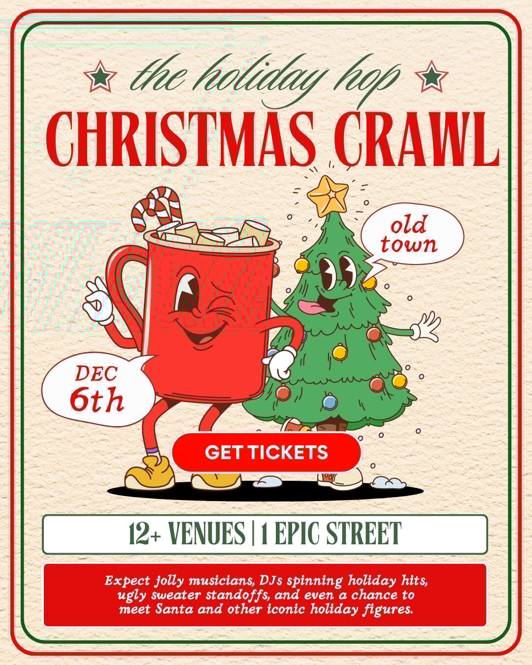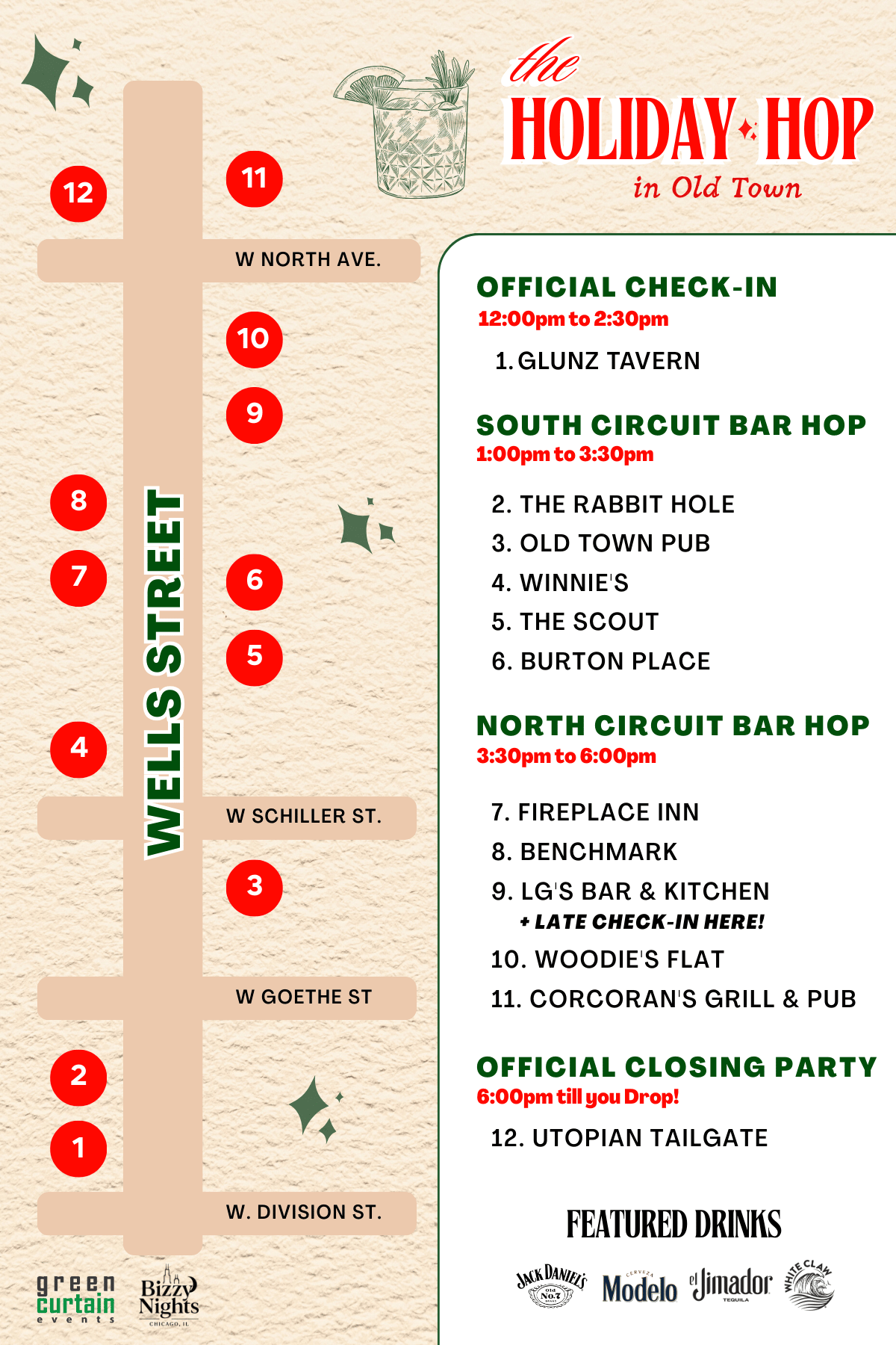 Get ready to make merry at the 2nd annual Holiday Hop! This spirited event will bring together cheer, cocktails, and festive vibes to Chicago’s historic Old Town neighborhood. Join us as we hop from bar to bar, exploring more than a dozen iconic locations on Wells St. that have “decked their halls” to the holiday max!